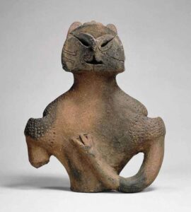 Creados durante el período Neolítico Jōmon de Japón, los dogū son figuras de arcilla, un cruce entre humanos y animales. Los arqueólogos han descubierto alrededor de 18,000 de ellos, con una antigüedad de entre 2,300 y 10,000 años, pero aún no están seguros de para qué se usaron. Las figuras de arcilla Dogu son abstractas, con características humanas o animales reconocibles que tienen una historia fascinante en Japón y datan de hace miles de años. Estas figuras enigmáticas han capturado durante mucho tiempo la imaginación de anticuarios, arqueólogos y el público por igual. Proporcionan un vínculo tentador con el misterioso pero notable período Jomon (alrededor de 12,500-300 a. C.) de la historia japonesa. Los dogu eran cazadores-recolectores y estaban estrechamente relacionados con la agricultura. Desarrollaron figuras de una deidad madre tierra que era adorada para obtener ricas cosechas, producción y fertilidad.