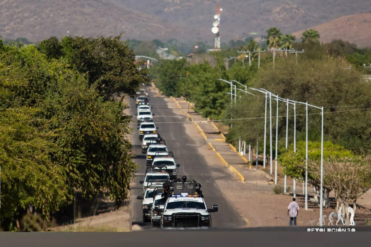 Tres convoyes distintos con más de 20 vehículos cada uno circulaban en distintos tiempos y lugares la carretera Apatzingan-Aguililla, resguardado los caminos y abriendo paso entre los bloqueos y los restos de los camiones y carros incinerados por miembros del crimen organizado en respuesta al abatimiento de Nemesio Oseguera Cervantes, alías “El Mencho” el pasado domingo.